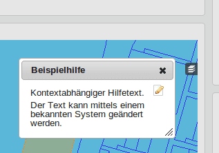 Icons für das Aufrufen der Hilfe werden als Overlay über den Anwendungsteilen angezeigt. Die Hilfe erscheint damit direkt beim beschreibenen Anwenungsteil. In der fertigen Anwendung sieht dies dann so aus: